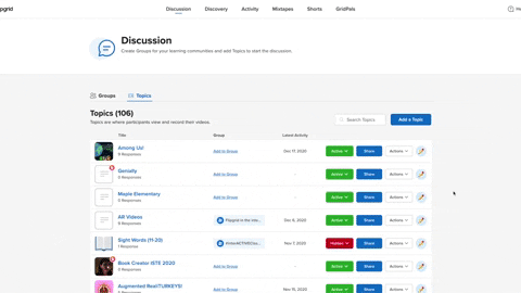 From the Flipgrid Educator’s Dashboard, select a Group, Topic, or even an individual video response.